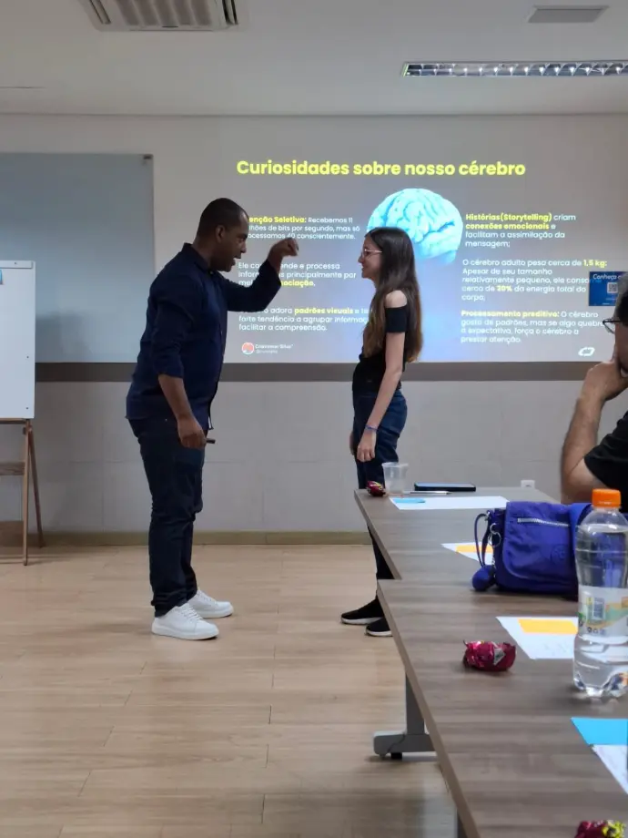Nada de teoria cansativa. Na NeuroOratória, cada minuto é uma vivência real — você fala, experimenta, recebe feedback e evolui.