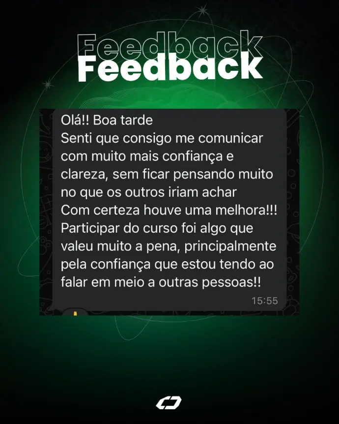 Durante o curso, você vai aprender a controlar o medo, usar o corpo e a voz com confiança e construir mensagens que inspiram e impactam.